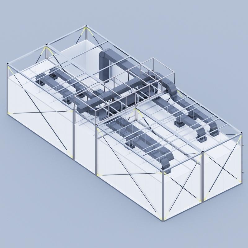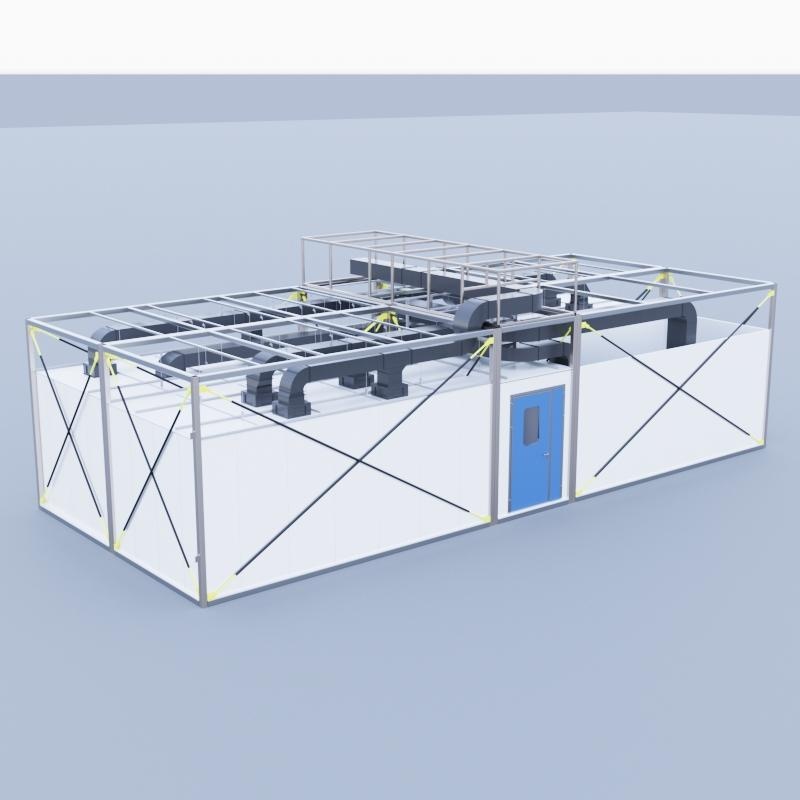 2) Selain menyepadukan komponen modular yang memenuhi keperluan suhu dalaman, kelembapan, kebersihan, dan persekitaran steril ke dalam setiap modul, bilik bersih modular juga boleh mengintegrasikan peralatan pengeluaran pelanggan di dalam unit modular, seperti peralatan farmaseutikal dan saluran paip Proses, gas proses dan bekalan kuasa peralatan, dan lain-lain, boleh dipasang dan sedia untuk operasi pengeluaran.